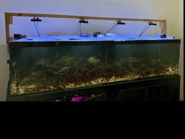 1. 8'x2'x2' acrylic display tank, has a few scratches on one side wall, red algae near the bottom that can be scraped off