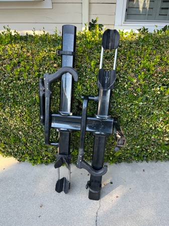 Will carry two bikes, up to 60 pounds per bike. Great for E bikes. There is a little peeling paint but it's in perfect working condition. Have the keys, includes a locking hitch pin.