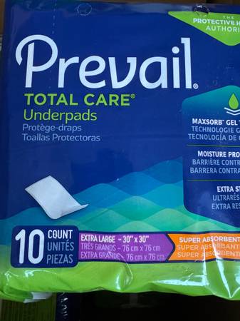 Prevail Proven | Super Absorbent Underpad | Ultimate Absorbency | 30"x30" X-Large Pad | 10 count per bag and total of 10 bags. Over ordering. Please see pics for details