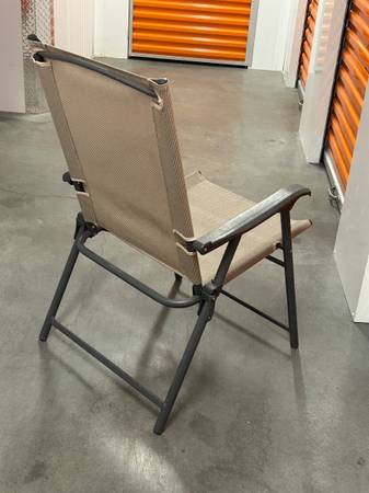 chair tan mesh on black metal frame sling style folding easy set up/put away nice condition only used indoors cash and carry pick up in Sunnyvale by appointment