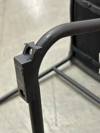 armless chair bucket style very comfortable padded leather/leather-like gray white stitching metal frame leg stops on bottom clean standard size cash and carry pick up in sunnyvale by appointment