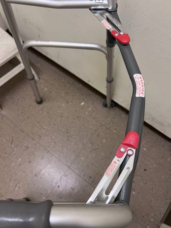 Wheeled Walker: Designed for safety and convenience, this rolling walker features push-button mechanisms that may be operated by fingers, palms, or even the side of the hand