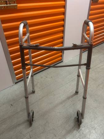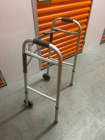 walker silver you push two 5" wheels Guardian nice condition push button to fold adjustable height cash and carry pick up in sunnyvale by appointment