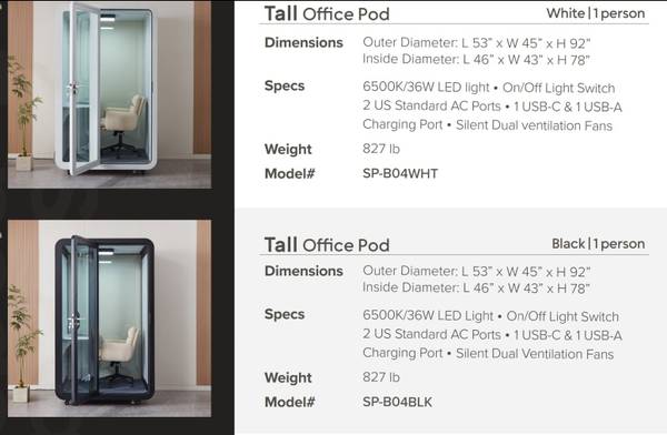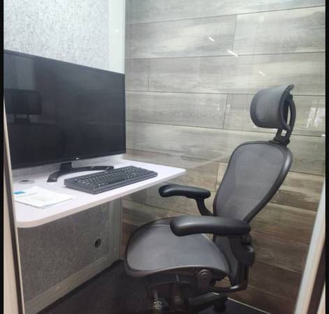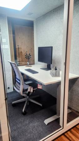We Have Some Of The Best: Office Pod's, Privacy Booths, Phone Booths , Smart Booths. Our PALLARES Smart Booths Are Unlike Other Booths On The Market , These Are Very Ergonomically Designed To Sit In For Hours With A Full 42" Worksurface And The Ability To Use A Regular Ergo Chair (Instead Of A Stool) Like ROOM , FRAMERY , HUSH , POPPIN. And Other Leading Brands That Were Designed For Only Making A 15minute Phone Call.