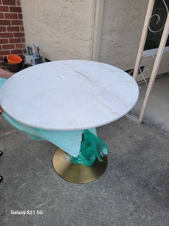Marble table for sale. Beautiful and hardly used. It is dissembled for easy moving. Diameter is 36". Regular table height. Please have tuck to pick it up.