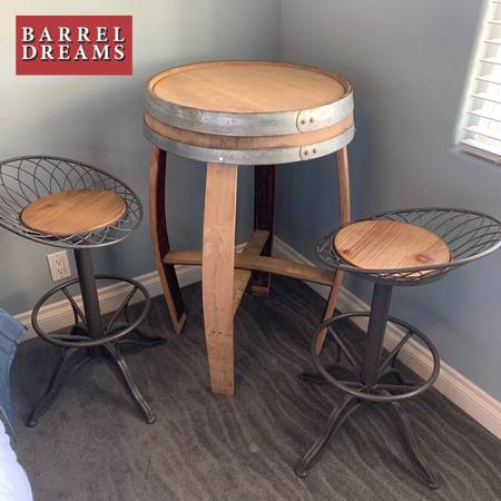 Reclaimed oak wine barrels are transformed into sturdy, stylish bistro tables that are perfect for your home cellar, bar, kitchen, or patio. These oak bistro tables are true conversation pieces.