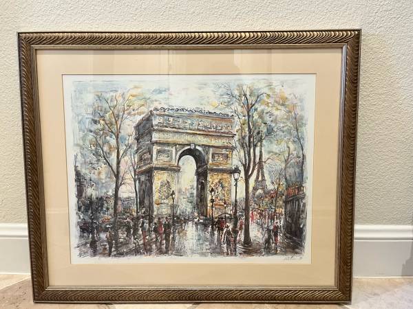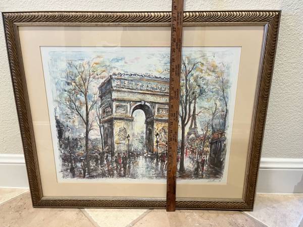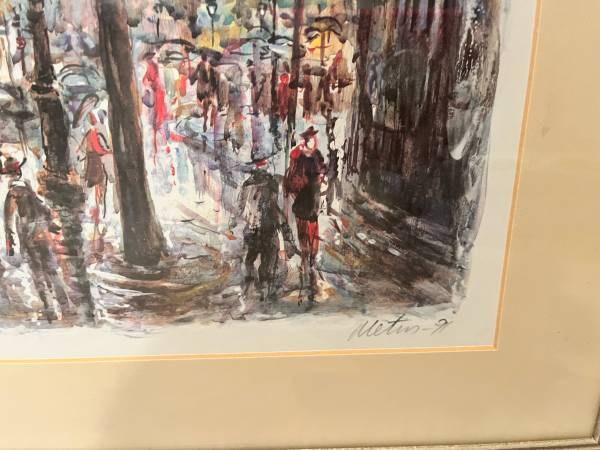 Signed by artist. Offer welcome. Brought home from Paris in 90s and matted/ framed professionally. From family estate.