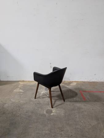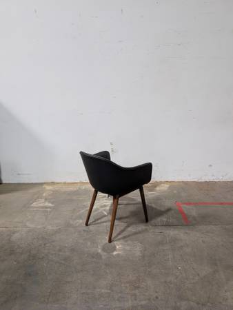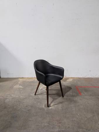 Est. RRP: $1,600 Sale price: $1,000 (each) Quantity: 4 Base: Dark Oak Upholstery: Black Leather https://us.audocph.com/products/harbour-arm-chair-dining-height-wood-base-upholstered