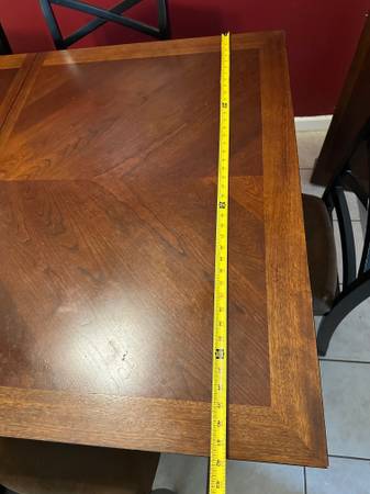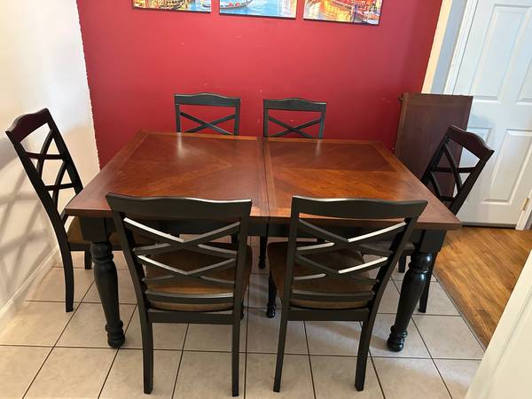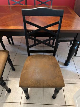 Table is in great condition, to my standards. Rarely used. 6 chairs and comes with a 18" extension leaf.