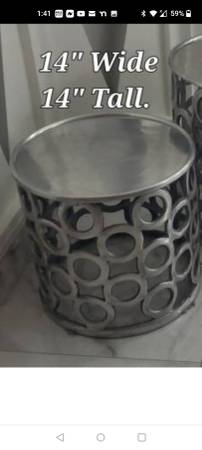 $50 each. I have 3 aluminum side tables perfect for outside patio they will not rust up. all 3 in great condition.