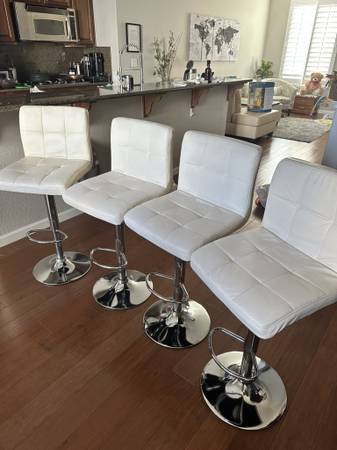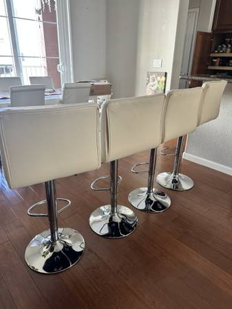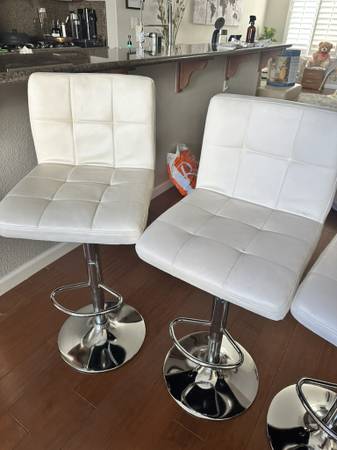 These four modern bar stools have been wonderful! Comfortable, easy to clean, and fully adjustable in height. They swivel smoothly and have a sleek chrome base that looks great with most kitchen or bar setups.