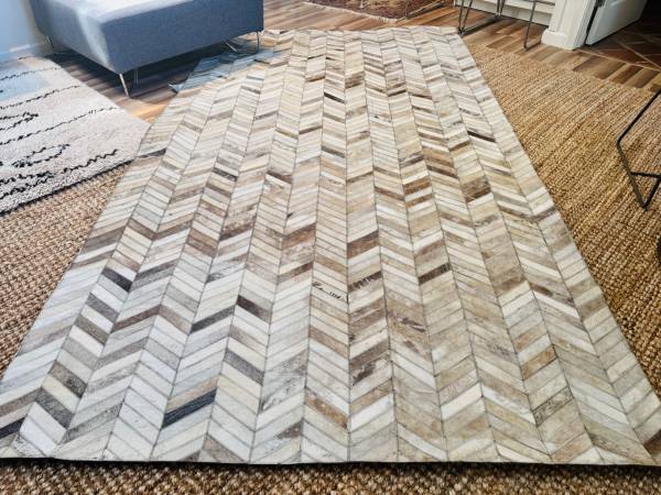 * CHEVRON DESIGN GENUINE HIDE AREA RUG . FLOOR COVERING ======================================================= [5'4"w x 9'8"l] used condition cash sale plz easy access . ground level THANKS for...