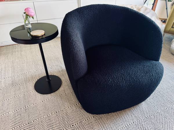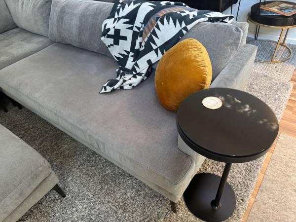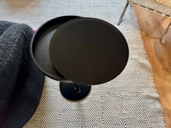 * reduced! MODERN GLASS TOP SIDE TABLE w/ STORAGE SPACE ============================================= [14" diameter x 25"h] cash sale plz . firm easy access . ground level THANKS for Looking!!...