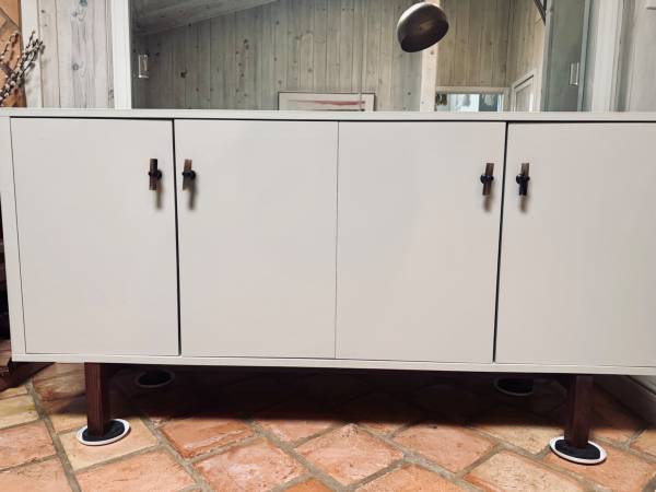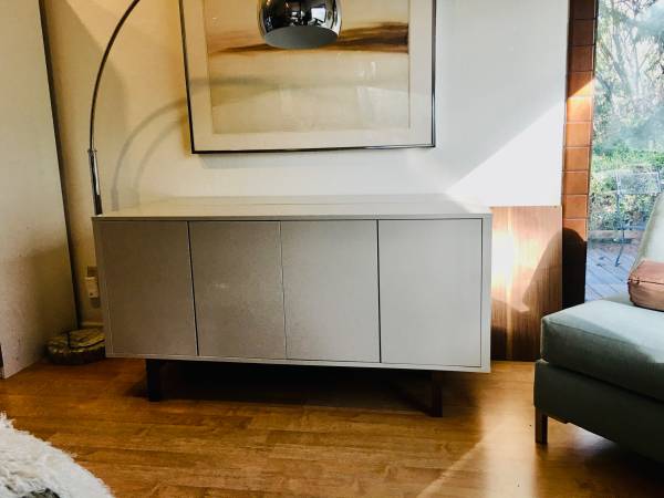 * Assembled!!! Mid-Century Modern: SIDEBOARD [Media Cabinet - Credenza - Buffet] ===================================================== [63”w x 15 3/4”d x 31 7/8”h] soft gray walnut veneer +4...