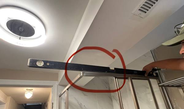 The shower frame and doors are as pictured but the tops are slightly not level (likely bent during shipping; see photo with level). If you think you can bend them so that they're straight enough, then I'm happy to pass them on!