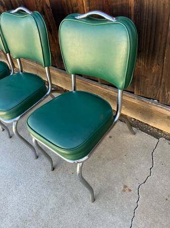 They were recovered at some point and more cushion was added. They’re very comfortable also not many of these chairs come with a handle on top most of these type of chairs don’t have a handle and have hand wear where they’re constantly picked up.