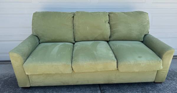 The sofa is micro fabric, Matcha green ,queen plus size mattress bed. Queen Plus is a little bit larger than the regular queen size mattress .