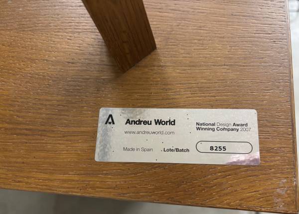 Classic mid century modern industrial design (award winning) Andreu World side or end table in oak veneer. Label underneath.