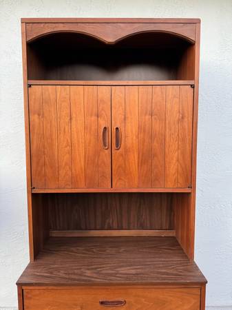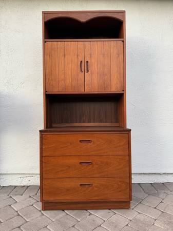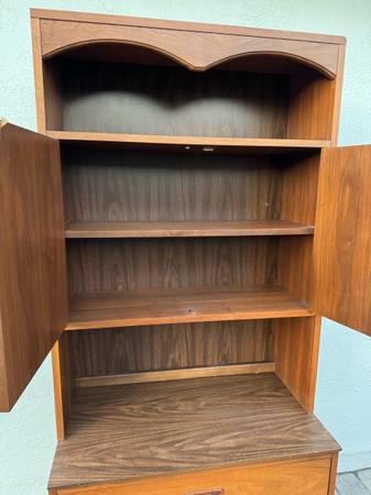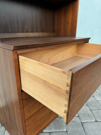Used in good condition besides some cosmetic blemishes pictured. All drawers slide smoothly. The hutch can be removed so you can use it as a dresser or nightstand. The same set sold on 1stDibs for $1500 without the shelf. We can offer local delivery for an additional fee.