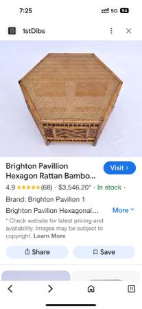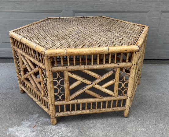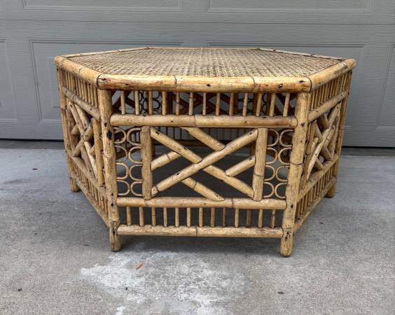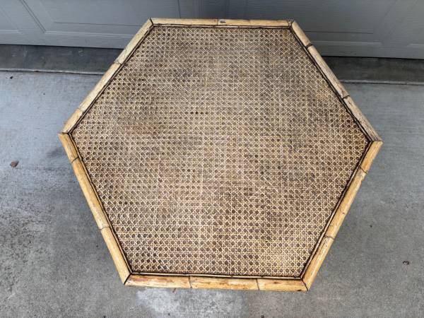 Beautiful, classic Brighton Pavilion (or in the style of) Asian inspired hexagon rattan coffee table with cane top. No makers name found. Ready for light refinish. Not user of it's age, most re described as "20th Century".