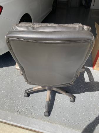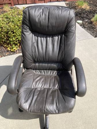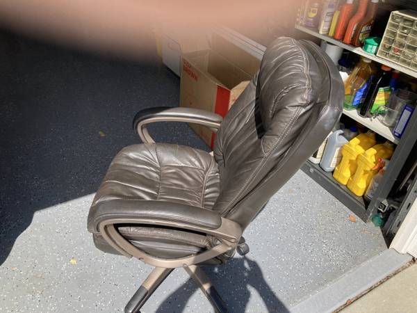 Executive Desk Chair Color Brown Material Vinyl. No rips or tears. Adjustable height . Like new condition Call Barry or