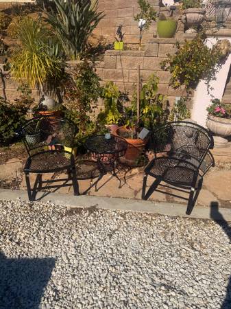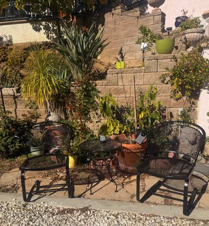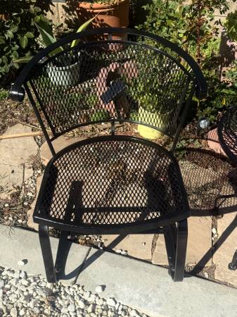Vintage 3 piece set by Russell Woodard Salterini collection Circa 1960’s 2 rocking: bouncy armless chairs and a side table Just spray painted Patio set, outdoor furniture Round, MCM