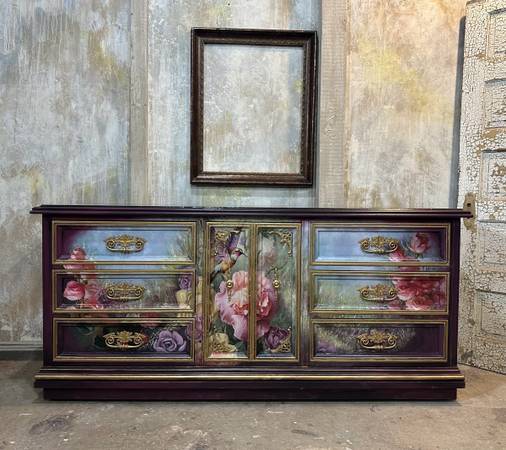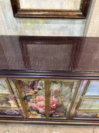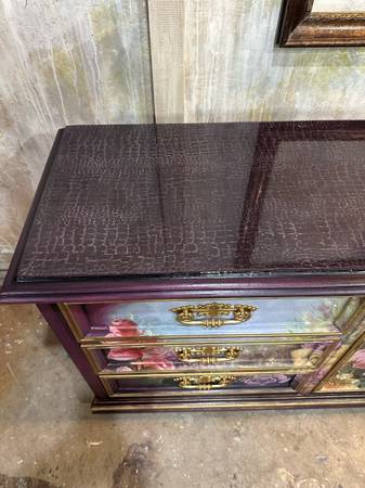 Hand painted and decoupaged. Crocodile texture top with resin finish. Ask me about free delivery. To see more of my work visit Loft2Paint on Facebook and Instagram. Text for quickest response...