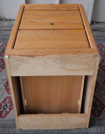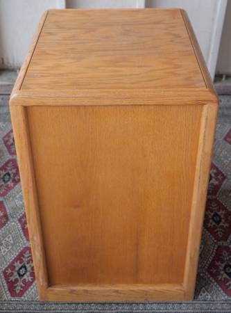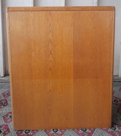 With one exception which was first mentioned above, both cabinets are also in excellent cosmetic condition. There are some extremely tiny scratches on some exterior wood surfaces from normal wear. But you'll only notice these cosmetic issues with direct bright light. All of these minor cosmetic issues don't significantly detract from the beauty of the strong oak wood grain.