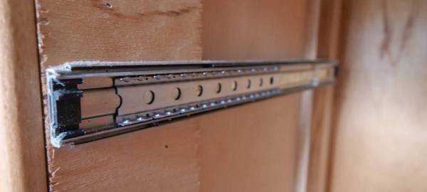 Each cabinet measures exactly 20.25" wide, 25.375" deep, and 30.75" tall. Each is composed of two internal drawers that pull completely out on ball-bearing metal sliders. The sliding mechanism is relatively smooth.