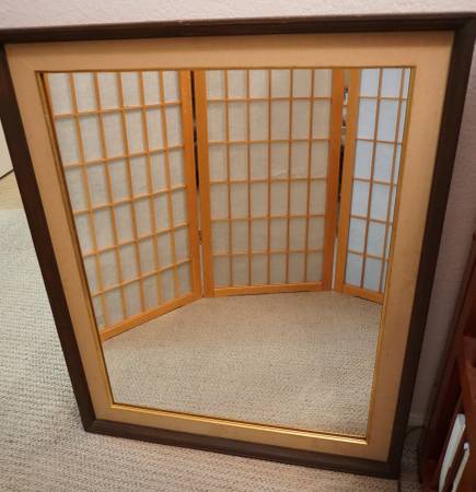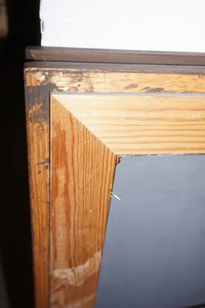 - The wooden frame and its dark brown paint are somewhat worn in a few places (you could touch up the existing paint, or repaint in your preferred color).