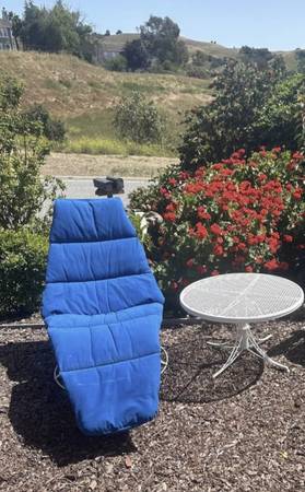 Siesta Bottemilker banana chaise lounge chair with cushion and round side table
