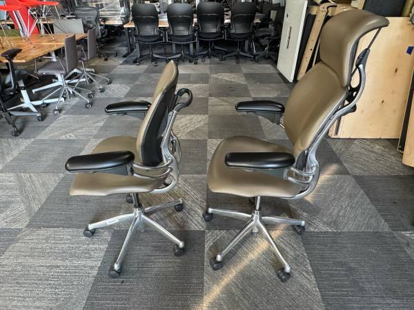 The Humanscale Freedom executive chair provides unparralelled back support. This uniquely ergonomic design self-adjusts to match your movements in the chair. That means continual support, no matter the task at hand.