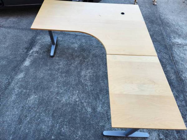 IKEA corner desk L shape desk Main desk is 63”/47”/31” Short extension is 24”/31” Can be configured I have left or right side in birch only See samples for details More information on google images
