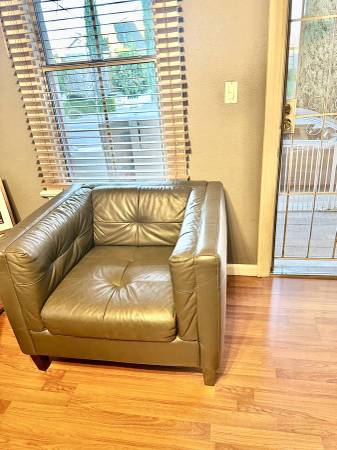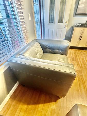 Grey Leather Armchair - $200 Just reduced! (33.5"D x 38.25"W x 29.5"H ) by Chateau D'ax. Paid over $2000. incredibly soft and firm Will consider a reasonable offer