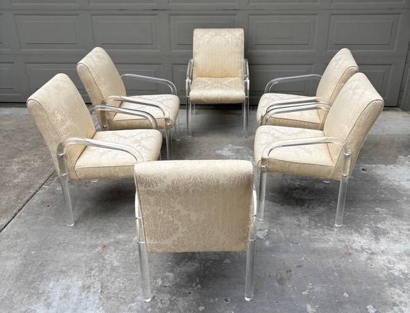 Classic set of six Lion in Frost (Leon Frost) lucite / Acrylic tubular dining arm chairs. I have the matching bow-tie table in another listing. All chairs have the engraved signature.