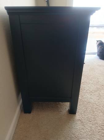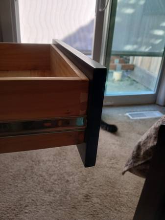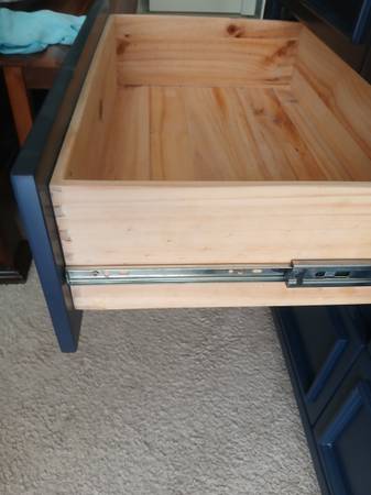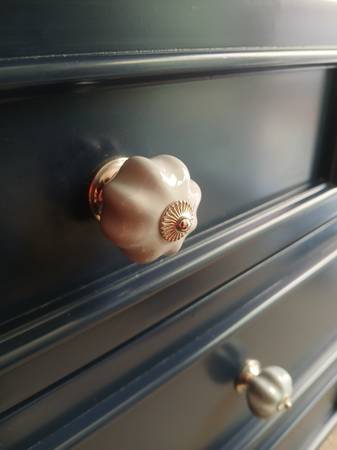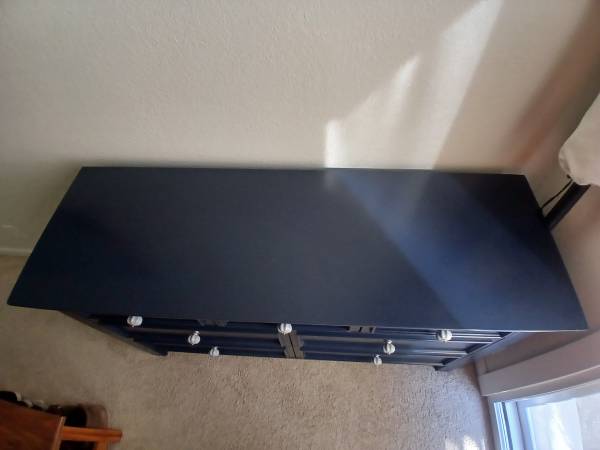 I have this solid wood dresser. It's not particle board. The drawers are dovetailed. It's 57½ inches long by 19½ inches wide by 31½inches tall. If you don't like the knobs I have the original knobs which are round and the same color as. The dresser. $400 obo