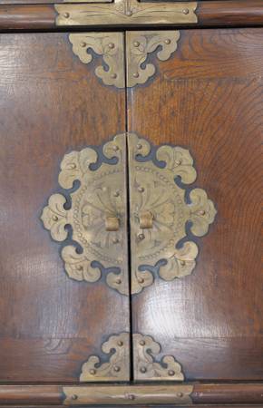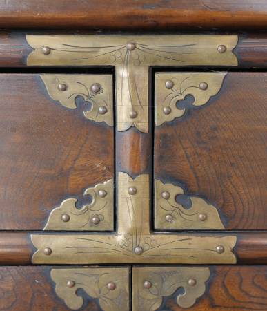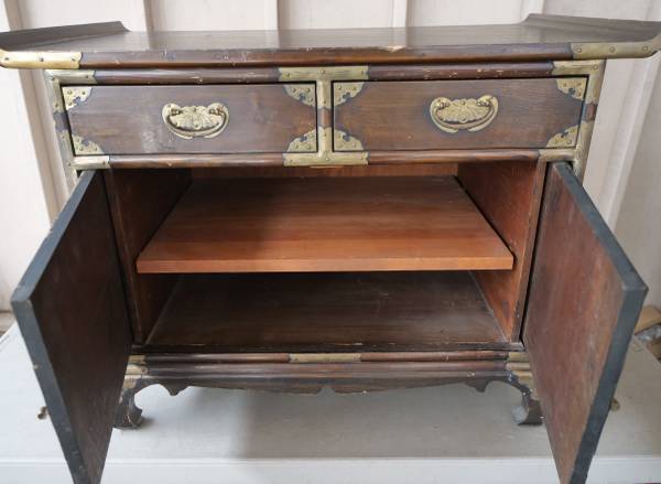I was told by the furniture gallery owner that the cabinet is constructed of solid Kiri wood, also known as Paulownia wood, which is indigenous to east Asia. These are solid Kiri wood pieces and not just Kiri wood veneer. This cabinet's construction is high-end, based on wood-on-wood joinery.