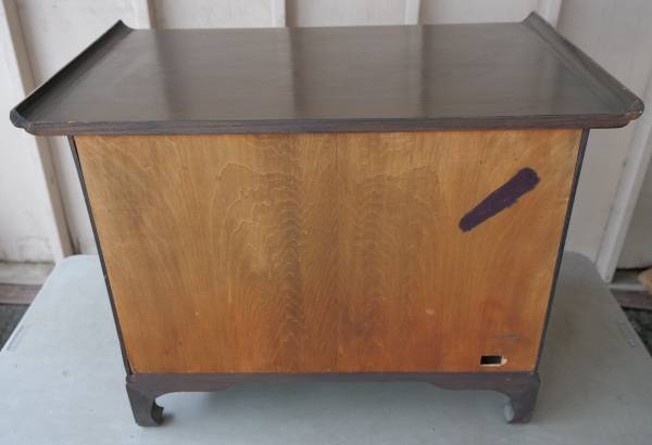 I purchased this cabinet from a high-end antique furniture gallery in San Francisco a few decades ago. At the time, I was told that it's a traditional made-in-Japan cabinet that was likely made in the mid-1950s. It's similar to a Japanese Tansu cabinet, but due to the lack of side handles, it's not intended to be a mobile cabinet.