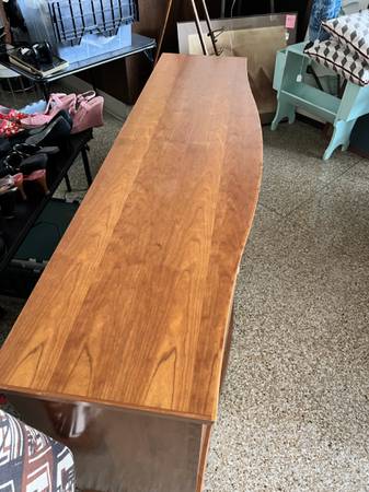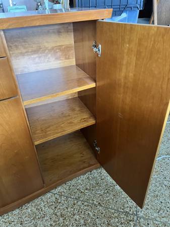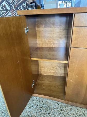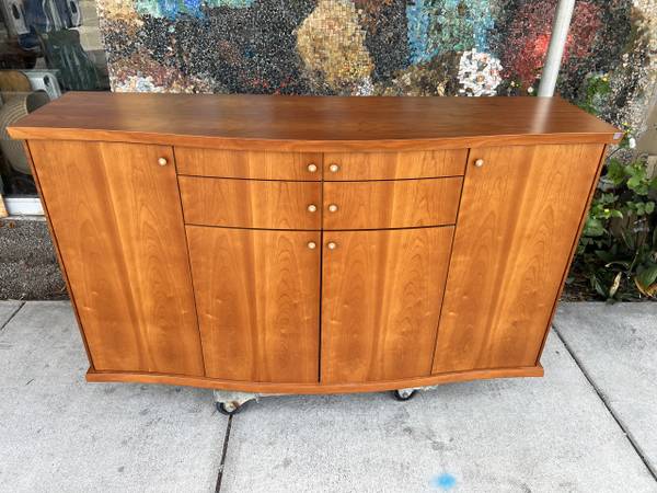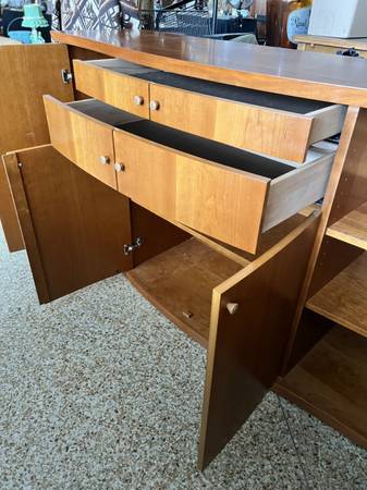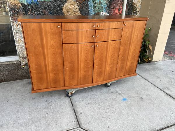 Price Drop!!: From Scandanavian Designs, this is a beautiful midcentury credenza. There are two large side compartments with 2 drawers in the middle over another compartment--- lots of storage space! This is a very solid piece of furniture.
