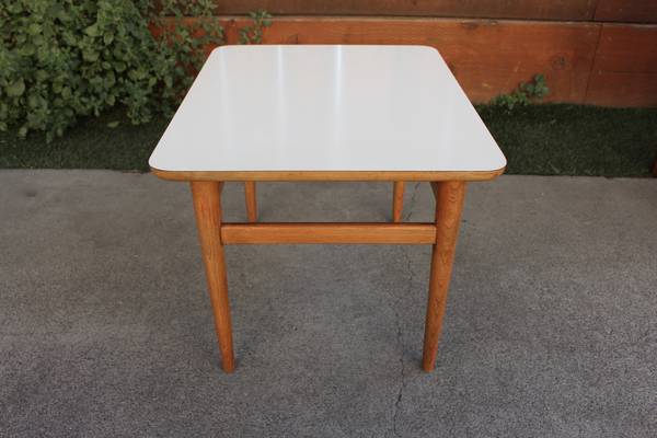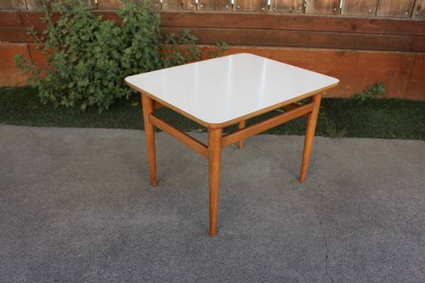 Mid Century Modern Birch Side Tables with White Laminate - furniture...