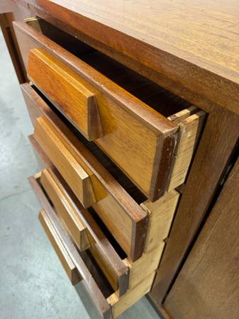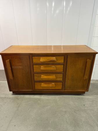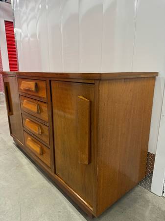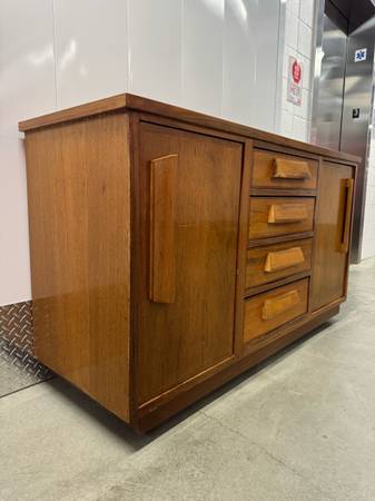Like new mid-century modern sideboard or credenza with sturdy wheels 62L x 21D x 35T Mid-century modern sideboard credenza with SOLID WHEELS