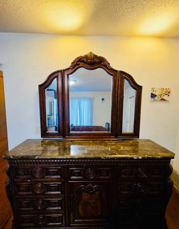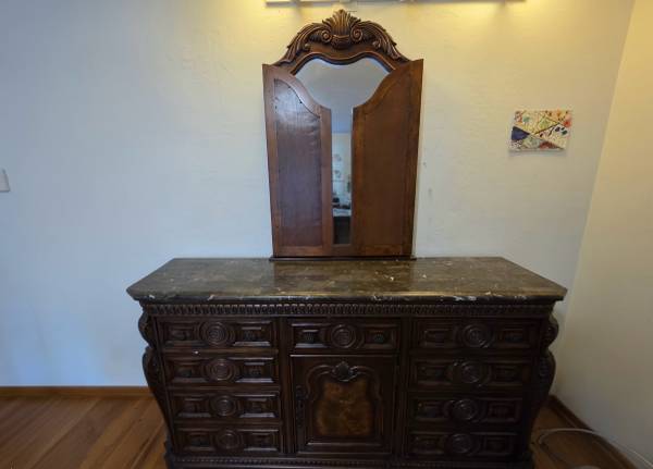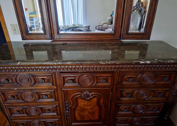 We bought this set a while ago for over 4000 dollars. Great condition with few extremely small minor scratches. Dovetailing in drawers. Wood with marble top. Price negotiable. Pickup only.