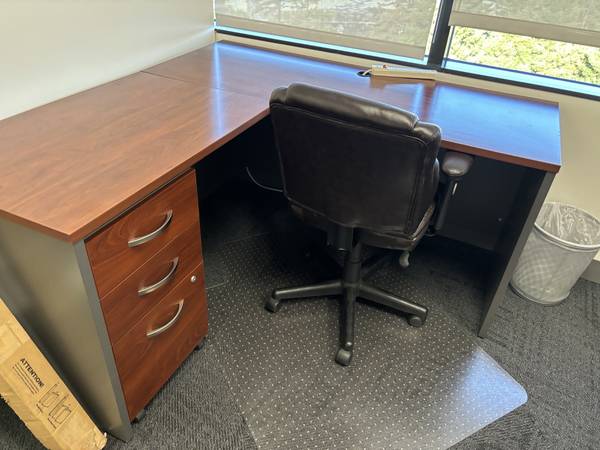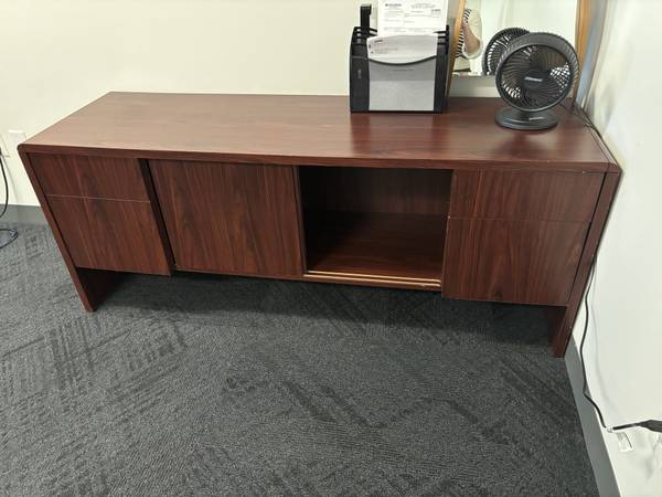 Desks Desk risers Filing cabinets Bookcase Storage cabinet TV stand Floor mats Chairs Everything must go. Come check it out or call of interested. LOW prices, some free.