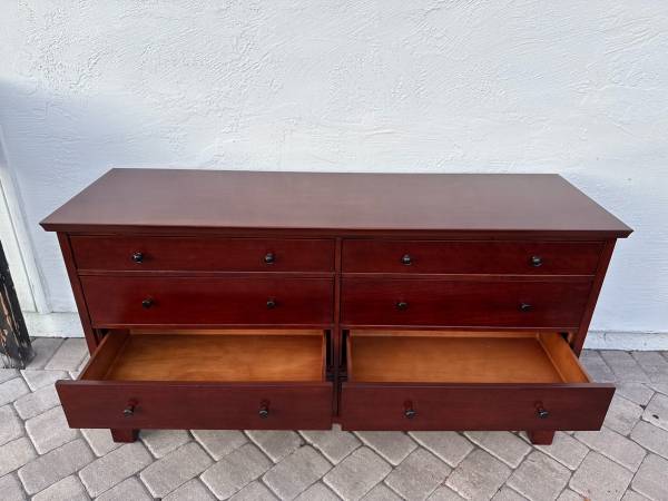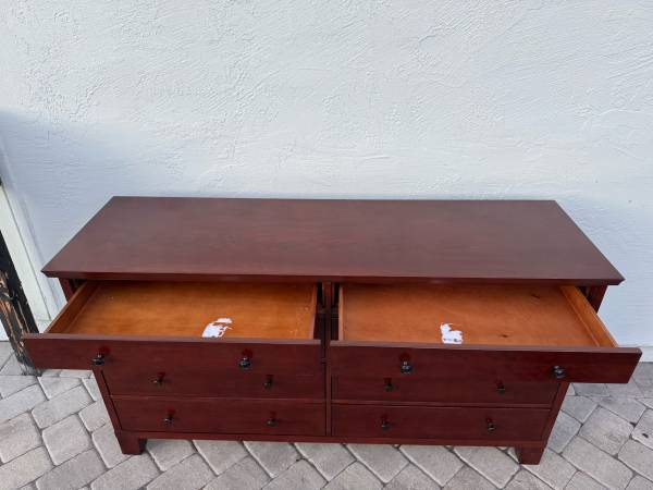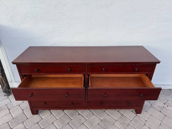 Used in good condition. All drawers slide smoothly. We can offer local delivery for an additional fee. 66L x 20W x 36H