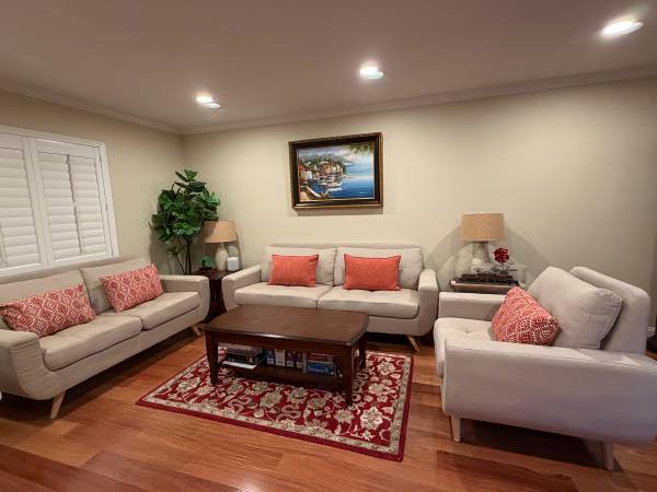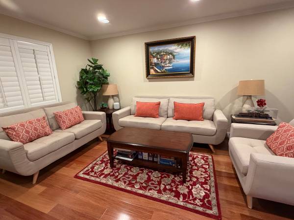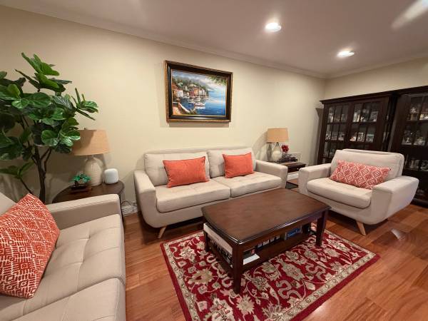 Selling a high-quality 3-piece fabric living room set from a smoke-free and pet-free home. Originally purchased for $2,000+, selling for a fraction of the price because we bought a new leather set. Condition is excellent/like new.