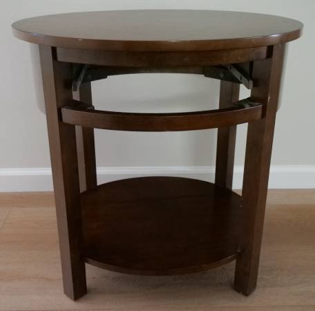 For sale is an end table that is intended to be used in a living room and placed to the side of a sofa. But it can also be used in other settings and for other purposes.