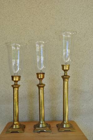 LOCATED IN SAN JOSE. The heights are different - overall 20-1/4", 21" and 23" tall. The bases are 4"x4". The shades are 5-1/4" wide and about 8" tall. Asking $100 (OBO)