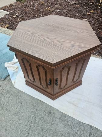 Vintage late 60s coffee table and end tables 4 piece set 1 coffee table 59.5 x 23.5 1 6 sided end table 23.5 x 23.5 x 19 high 2 square end tables 27.5 x 27.5 x 19 high All are in excellent condition