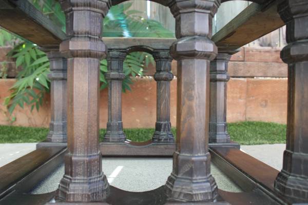 One of a kind piece! See pictures for details. Thick glass Measures: H:16 W: 30 D: 30