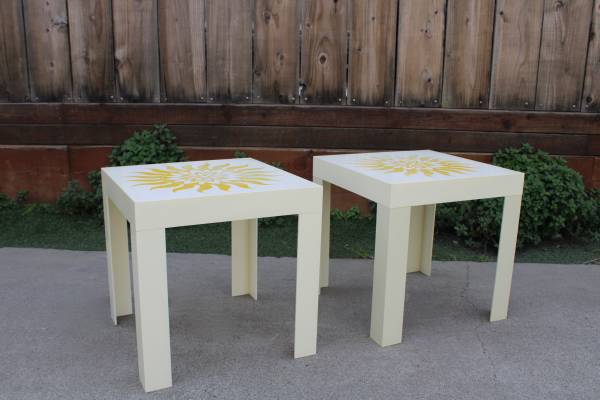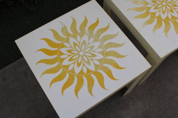 Great one of a kind set! Top has a very cool design. Great statement pieces! Measures: H: 16 W: 16 D: 16